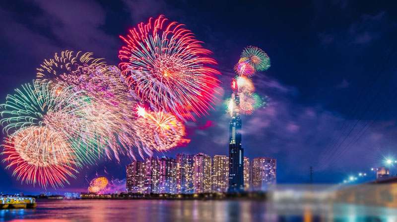 Fireworks will be set off from the top of the Saigon River Tunnel (District 2) and the Landmark building in Vinhomes Central Park (Binh Thanh district). The other shows will be held at Dam Sen Cultural Park (District 11), the National History and Culture Park (District 9), Ben Duoc Memorial Temple (Cu Chi district), the Can Gio stadium (Can Gio district), and the administrative centre in Nha Be district.