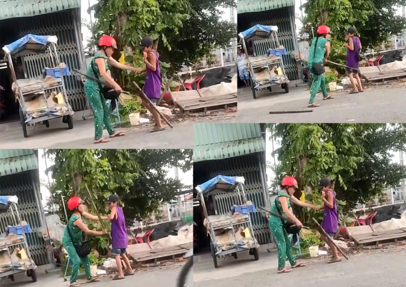 My Tu Commune Police (Can Tho City) verified and clarified a video posted on Facebook about a woman using a wooden stick to beat two boys because of unsold lottery tickets.