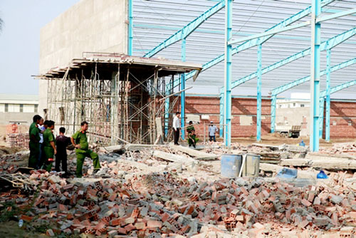 Pham Van Bo was standing just a few steps away when the 10 meter (33 feet) high, 30 meter wide wall at the construction site of a garment factory in Long Ho District, Vinh Long Province collapsed Friday morning.