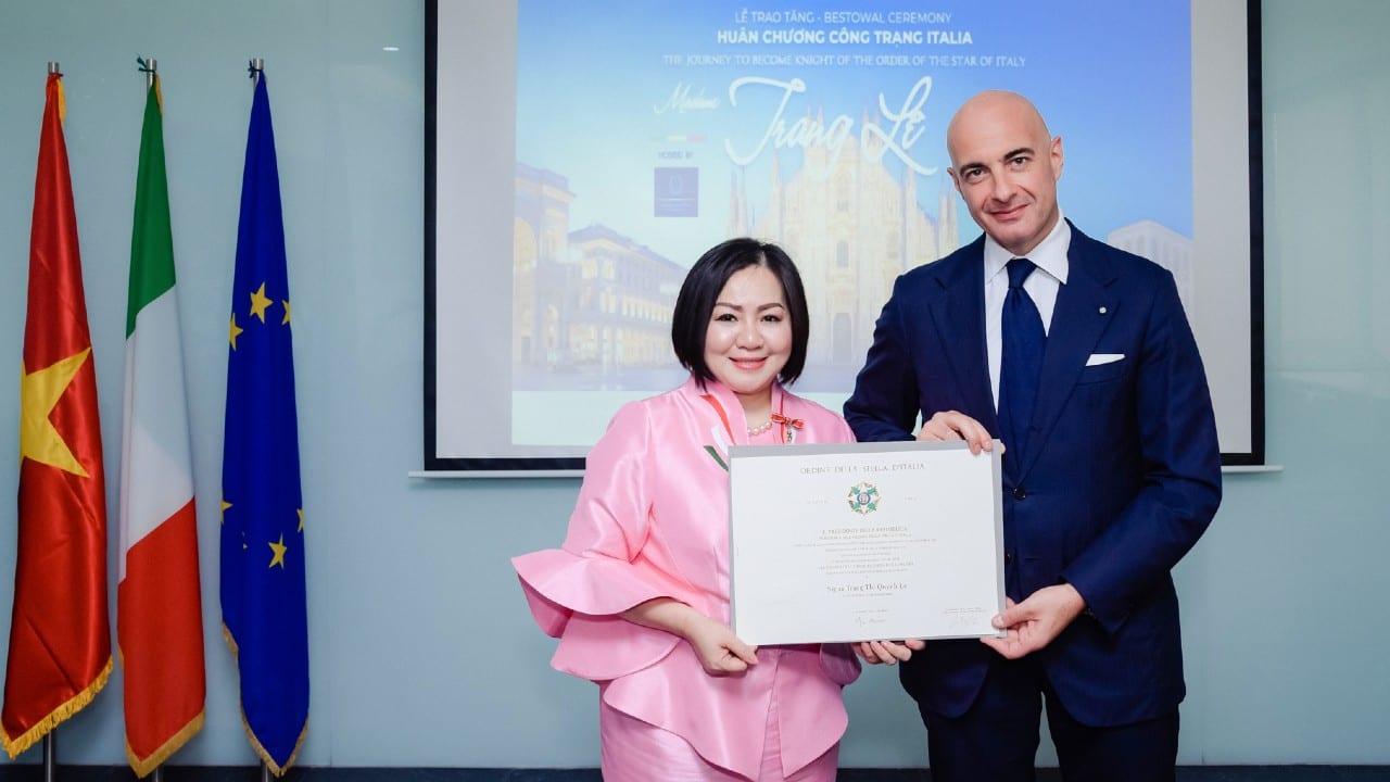 The Order of Merit of the Star of Italy is one of the two Orders of Merit of the Republic of Italy. It is devoted to Italians abroad and foreigners who have acquired special merits in the promotion of friendly relations and cooperation between Italy and other countries and the promotion of ties with Italy. In Vietnam, this Merit was bestowed to a limited number of prominent persons in the fields of politics, economics, culture, academia and justice. Particularly in the field of fashion and communication industry, Ms. Trang Le is honored to be the first individual in Vietnam to be awarded this noble and prestigious award from the President of the Republic of Italy.