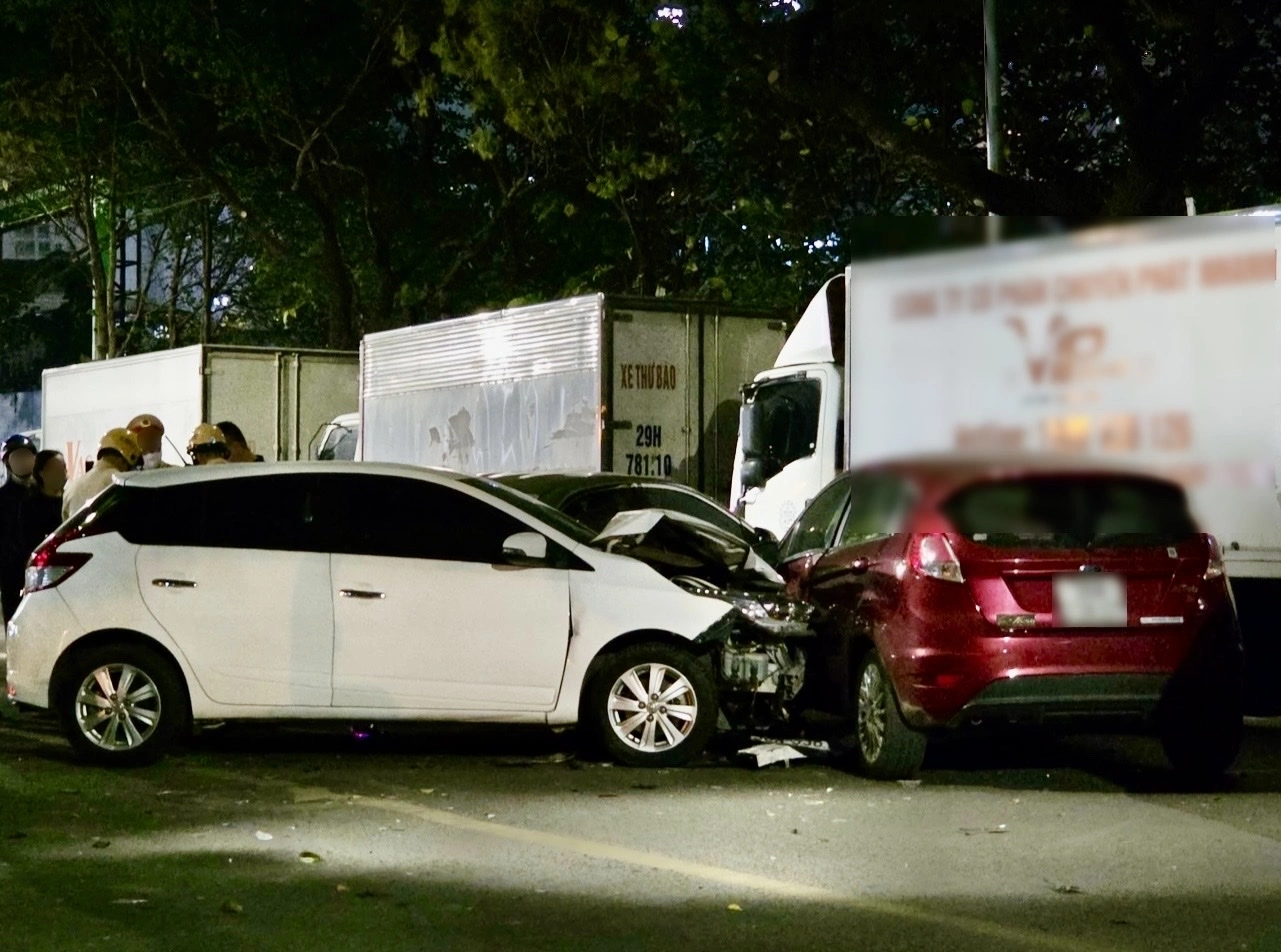 The accident occurred on the evening of March 6 on Nguyen Chanh Street, when a car lost control and slammed into a line of vehicles.