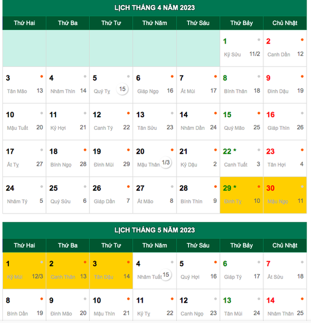 Thus, this year, employees will be off on the occasion of Hung King’s death anniversary, Victory Day, and International Labor Day from April 29 to the end of May 3, for a total of 5 consecutive days off.