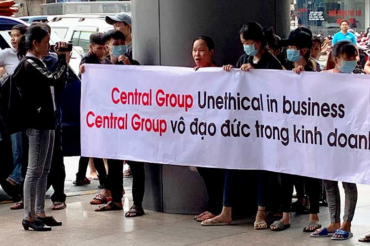 Dozens of Vietnamese garment suppliers and their employees gathered outside Central’s subsidiary office to protest on Wednesday, holding up placards. One read: “Central Group: unethical in business.”