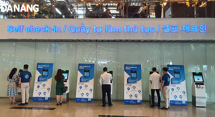 At 1pm on August 1, Korean male tourist Minsik arrived at Da Nang International Terminal to check-in to return home after his trip to the central region was guided by airline staff to the self-check-in device area, instead of having to wait in long lines like before.