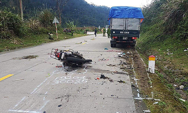 Two Germans died Wednesday after their motorbike was hit by a truck on the Lo Xo mountainous pass in Kon Tum Province.