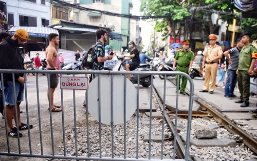 Police officers set up barricades, stood at Tran Phu and Dien Bien Phu streets and patrolled and reminded cafes next to the train.