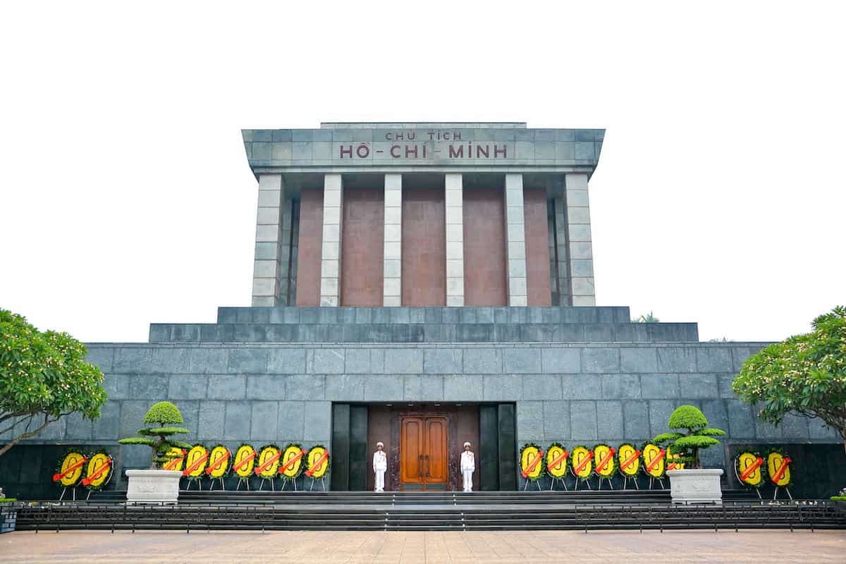 The embalmed body of Uncle Ho is preserved in the central hall inside the building, and protected by a military honor guard.