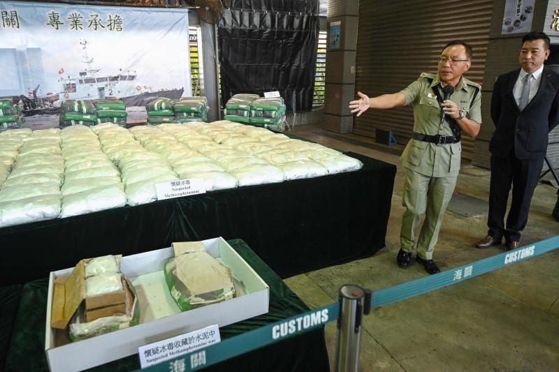 The crystal meth — reportedly worth around HK$300 million (US$39 million) — was discovered last Thursday hidden in a shipping container with a declared cargo of cement bags, officials said.
