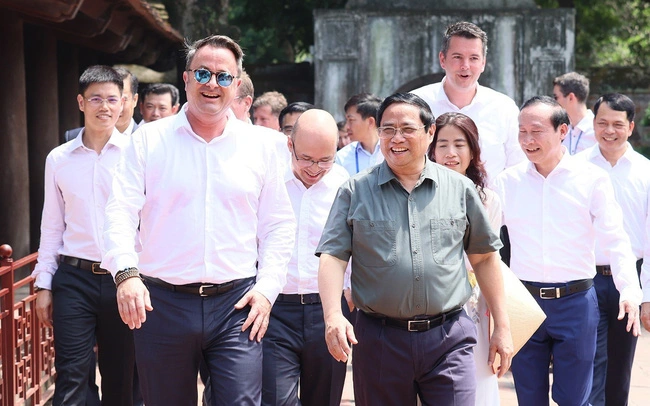 PM Pham Minh Chinh and PM of the Grand Duchy of Luxembourg Xavier Bettel visit the Temple of Literature – Quoc Tu Giam. Photo: TTXVN