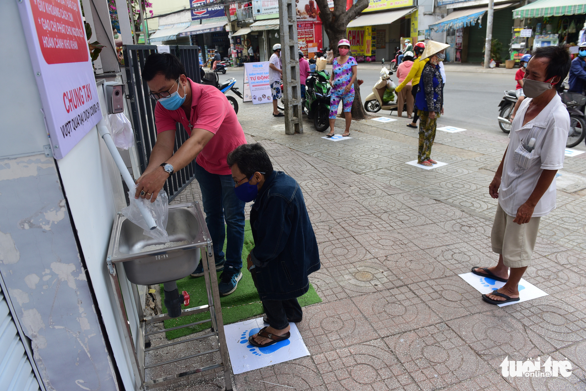 Those in need can visit his ‘ATM’ at 204B Vuon Lai Street in Tan Phu District, where all they need to do is press a button in order to receive 1.5 kilograms of uncooked rice they can bring back to their families.