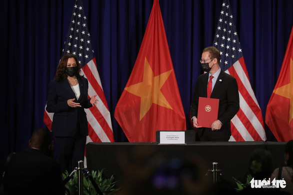 The U.S. Embassy in Vietnam and a local agency have signed a lease agreement for building a new embassy complex in Hanoi, in the presence of visiting U.S. Vice President Kamala Harris.
