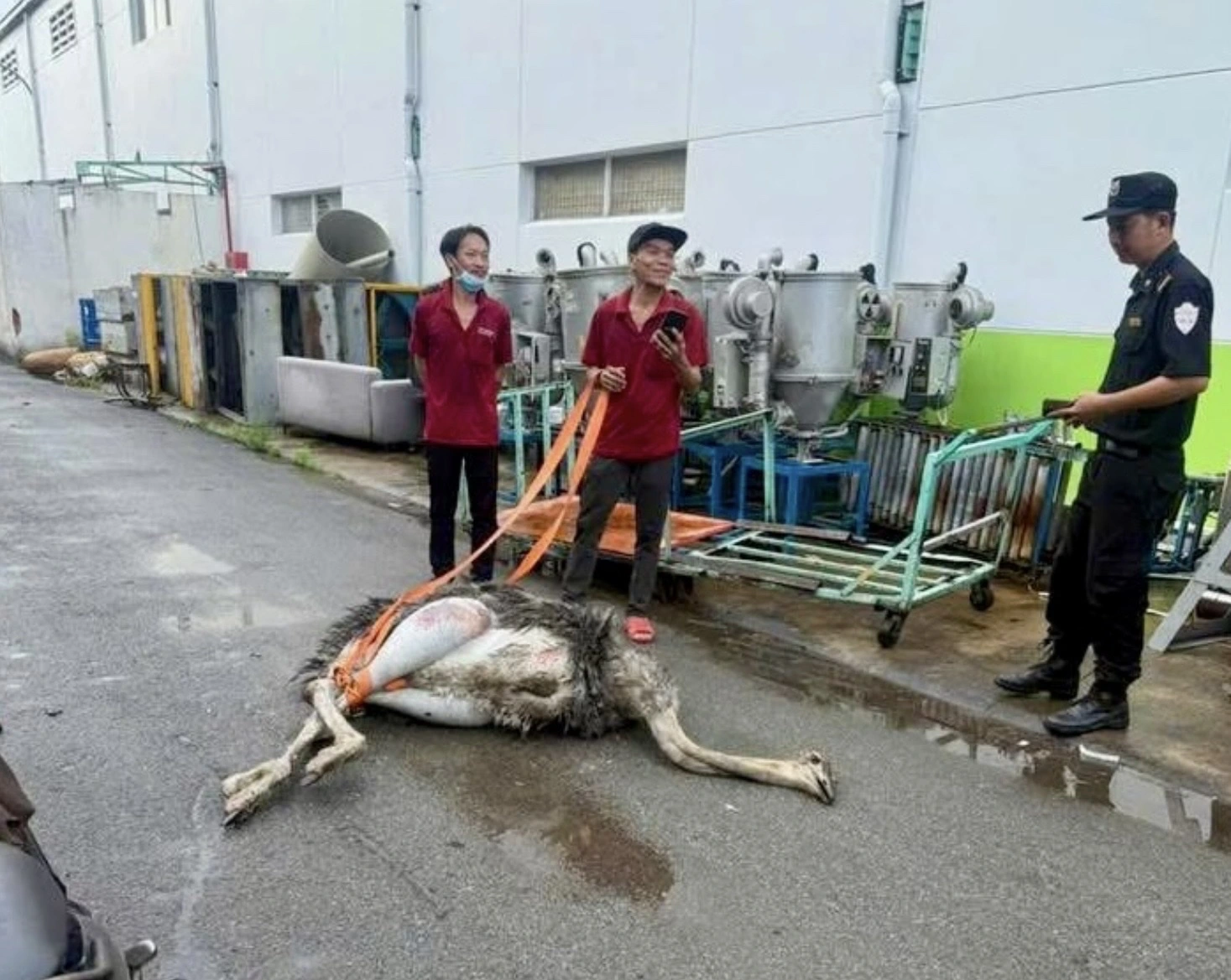 According to officials from Ben Cat Ward, the bird was caught on November 7 after it was seen sprinting at high speed through the My Phuoc 3 Industrial Zone. The ostrich reportedly collapsed and died shortly afterward, likely from fatigue and lack of food or water while roaming outdoors.