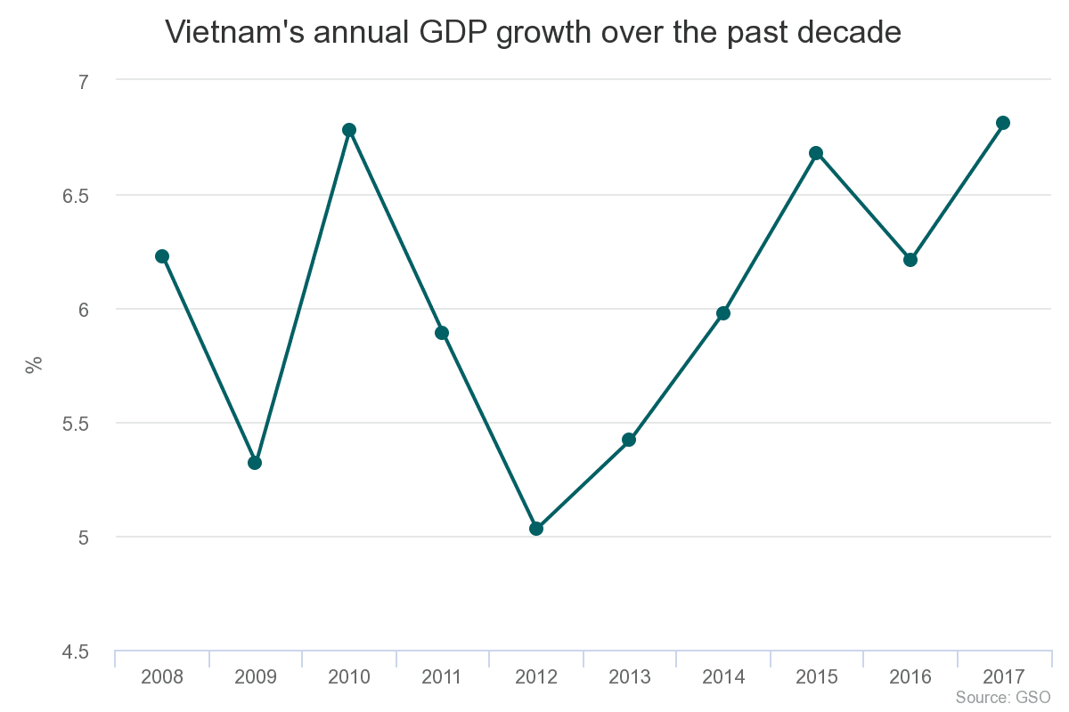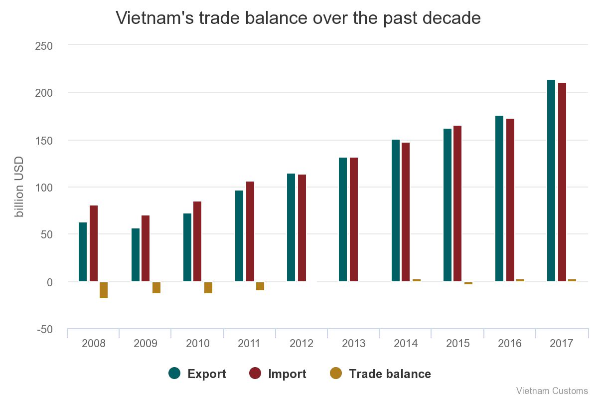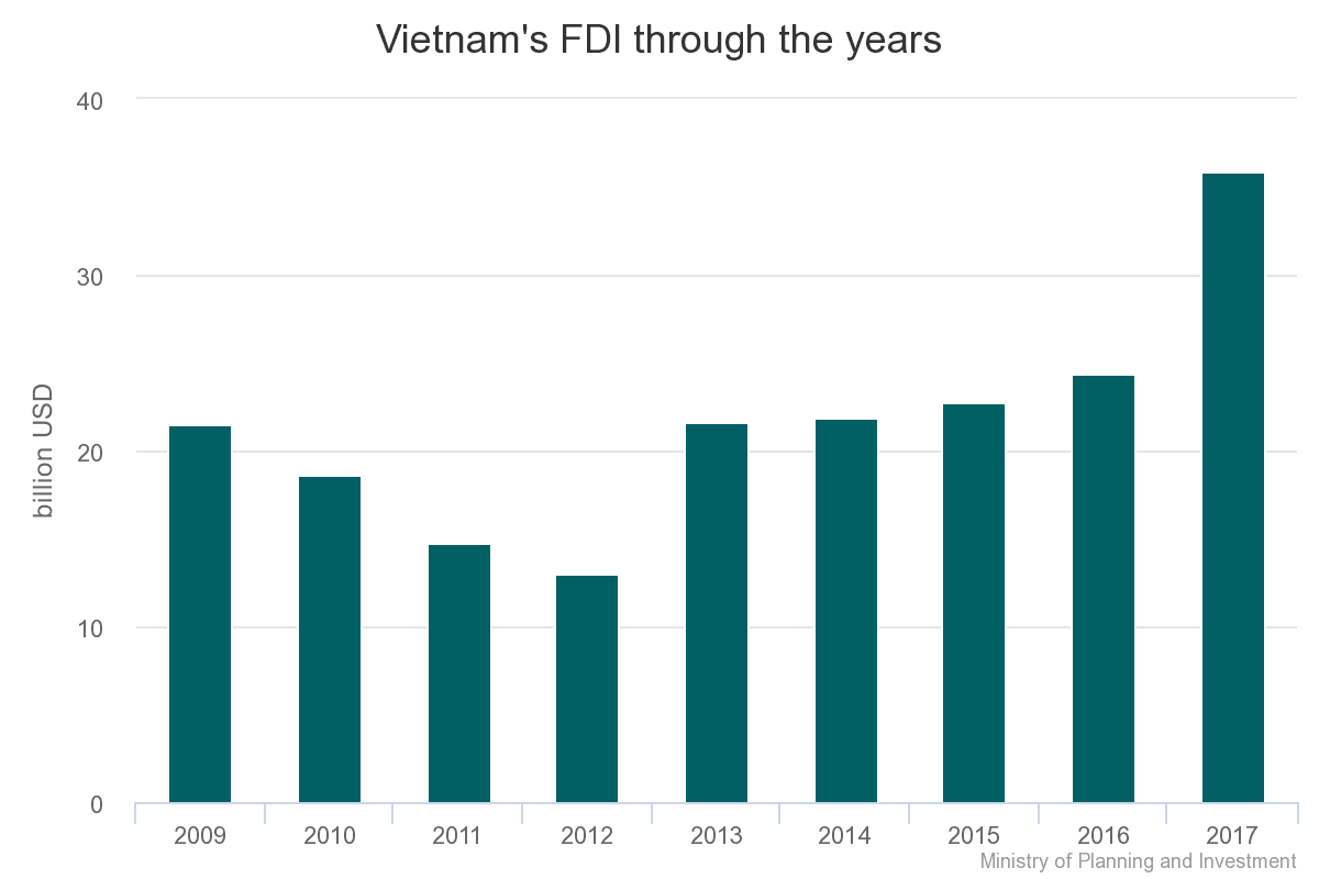 Another 10-year record that Vietnam achieved this year was foreign direct investment (FDI) inflow, standing at $35.88 billion, up 44 percent against 2016, according to the Ministry of Planning and Investment.