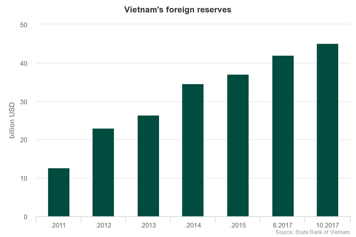 Trong was addressing a major Party meeting and reported that the country’s foreign reserves have reached $45 billion, which is around $6 billion higher than in late 2016.