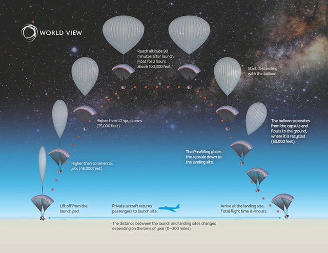 World View Enterprises plans to launch 3,000 balloons per year. Once back on the ground, there will be a GPS-guided parachute that will guide the cabin to the correct location for landing.