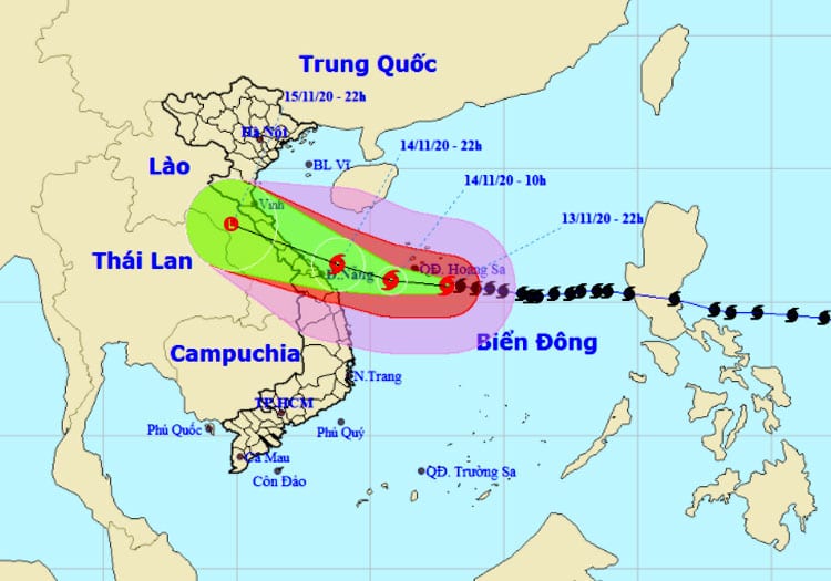 The centre reported that at 4 am, November 14, the storm was located 390 kilometres to the east of Danang-Thua Thien Hue provinces with a wind power of 135-165km per hour.