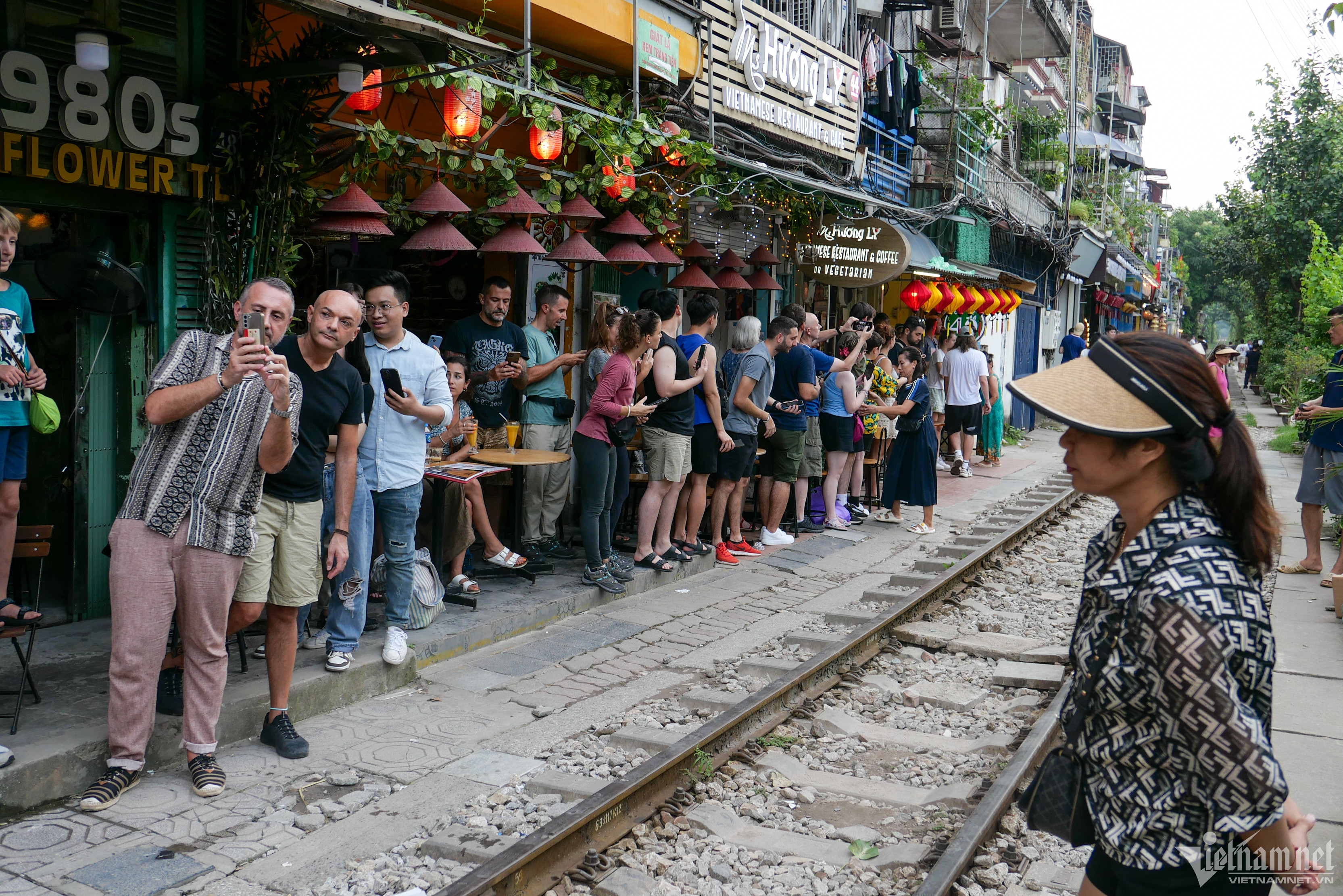 On the afternoon of August 15, many tourists still enter the “train street coffee street” area of Hanoi to drink coffee and take photos.