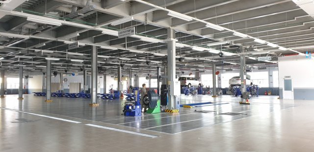 The branch has an area of nearly 4,000 sq m, including three main areas: a product showroom, a customer lounge, and a service area. The service area has 40 compartments for repairs, including 12 for express repairs / general repairs and 28 for painting. including paint mixing and color mixing in closed areas, which ensures environmental safety.