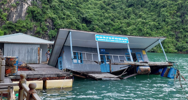 The fishing village classroom reserve on Ha Long Bay sank due to deterioration. (Photo: VNA)
