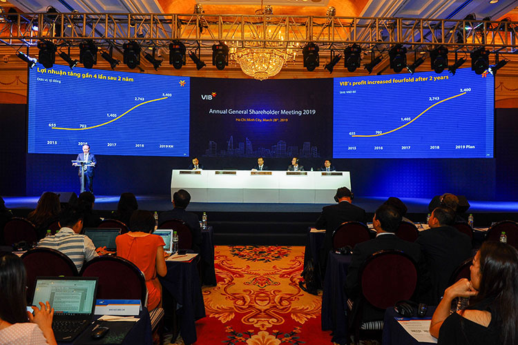 At the Annual General Shareholders Meeting of Vietnam International Bank (VIB) in HCMC on March 28, 2019, shareholders of the bank have approved the business plan for 2019, which includes a pre-tax profit of VND3.4 trillion (US$146 million), up 24 per cent from last year, and VND182.9 trillion in total assets.