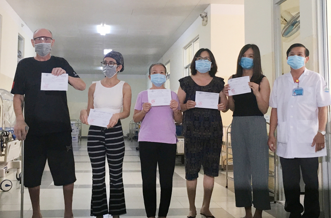 Five Covid-19 patients in HCMC, including an American man and his wife, were discharged Monday, along with 12 others in Hanoi and Da Nang.