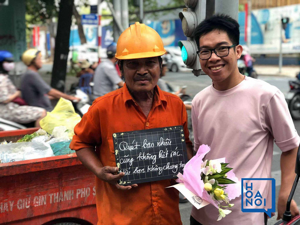 Nguyen Hong Viet, a 33-year-old office worker in Ho Chi Minh City, has been awarding gifts and flower bouquets to street sweepers as well as spreading their wishes to improve the living environment to other people through photos on his personal Facebook account.